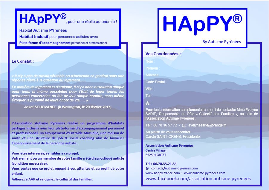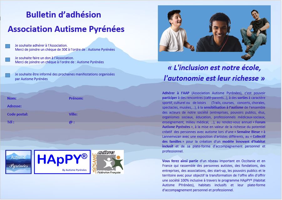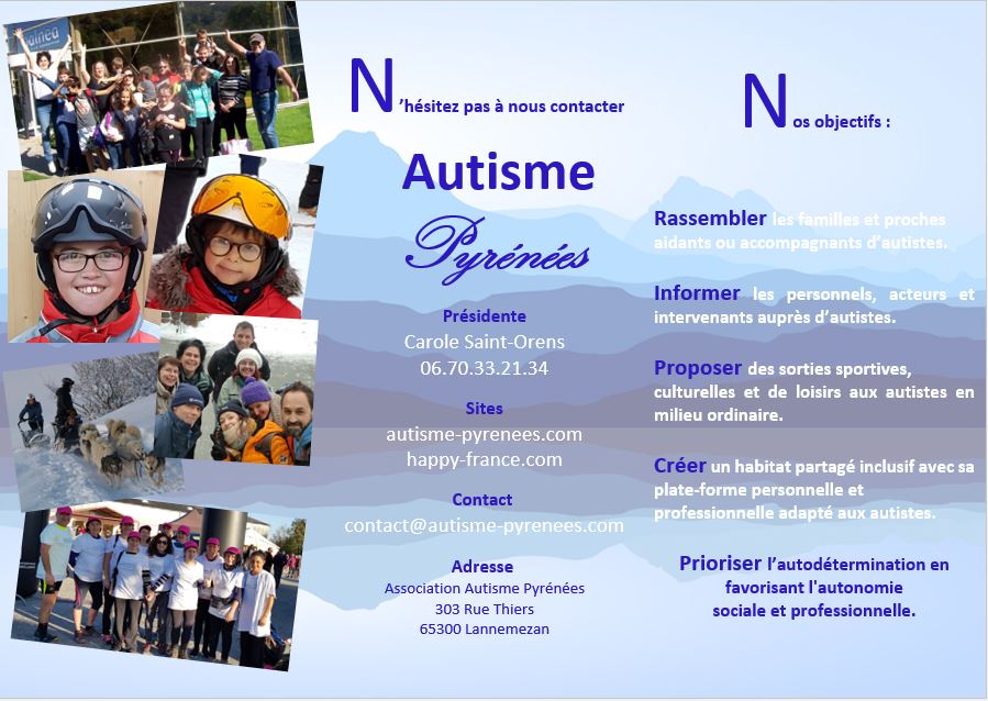 Information(s) complémentaire(s) sur les services proposésL’AAP a pour objet de rassembler les familles d’enfants autistes et toute personne sensible à ce handicap :