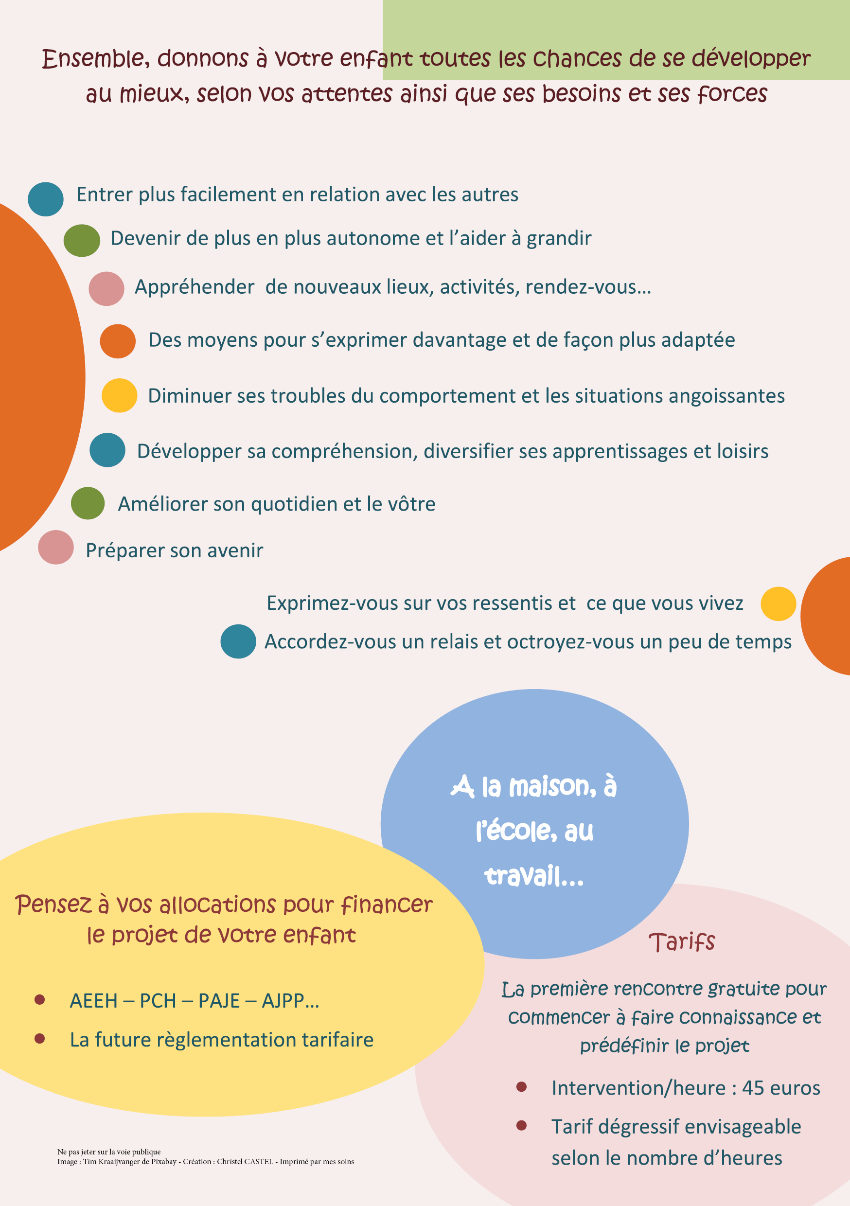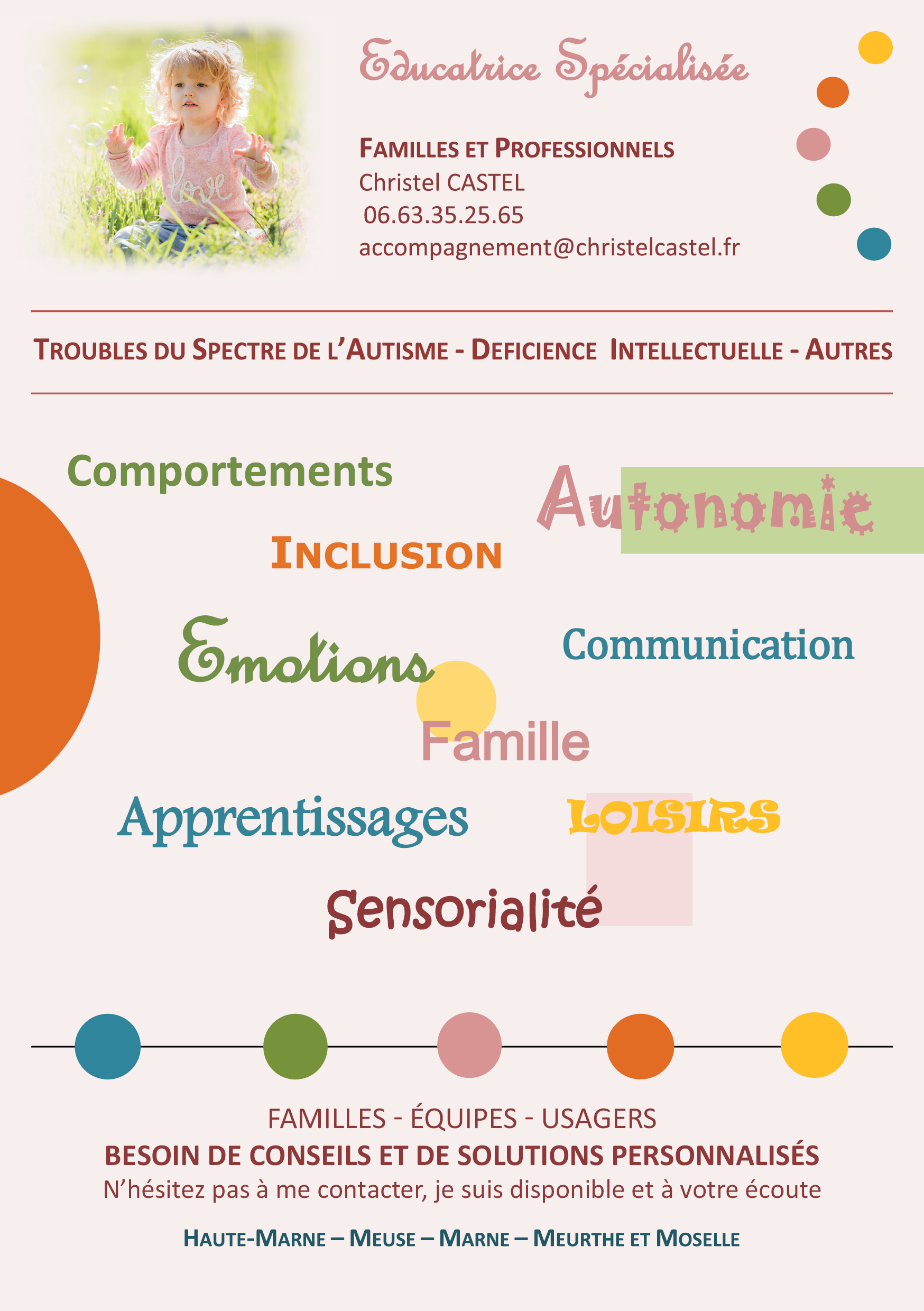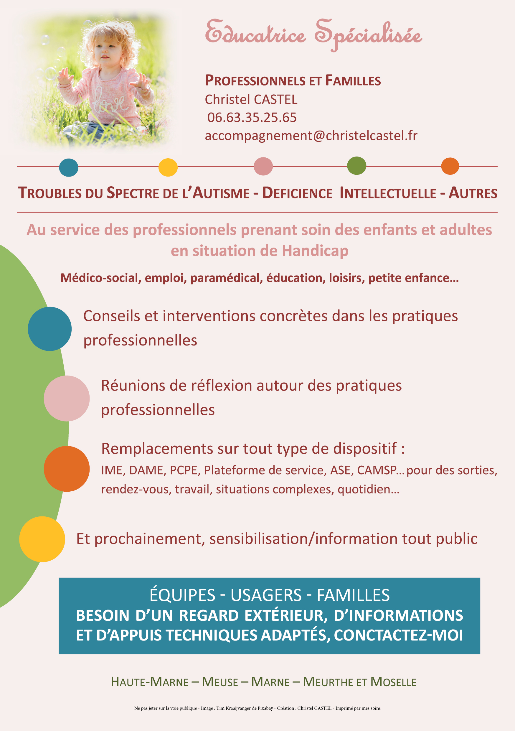Information(s) complémentaire(s)Intervenante spécialisée dans les troubles du spectre de l'autisme/TND/Déficience