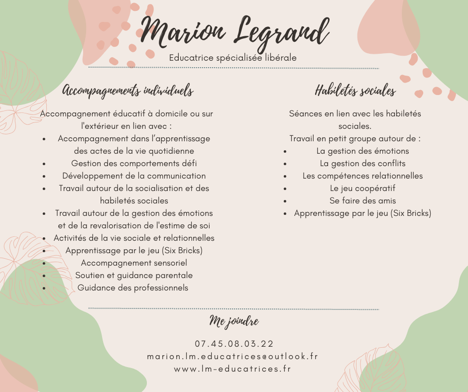 Aujourd’hui, j’ai à cœur de proposer un accompagnement socio-éducatif adapté et de qualité à des enfants, adolescents et adultes porteurs d’autisme, trisomie ou TDAH, avec ou sans déficience associée. Je privilégie un accompagnement bienveillant et adapté aux besoins de la personne et de son entourage. J’ai à cœur d'aller vers un style de vie valorisé pour les personnes accompagnées.