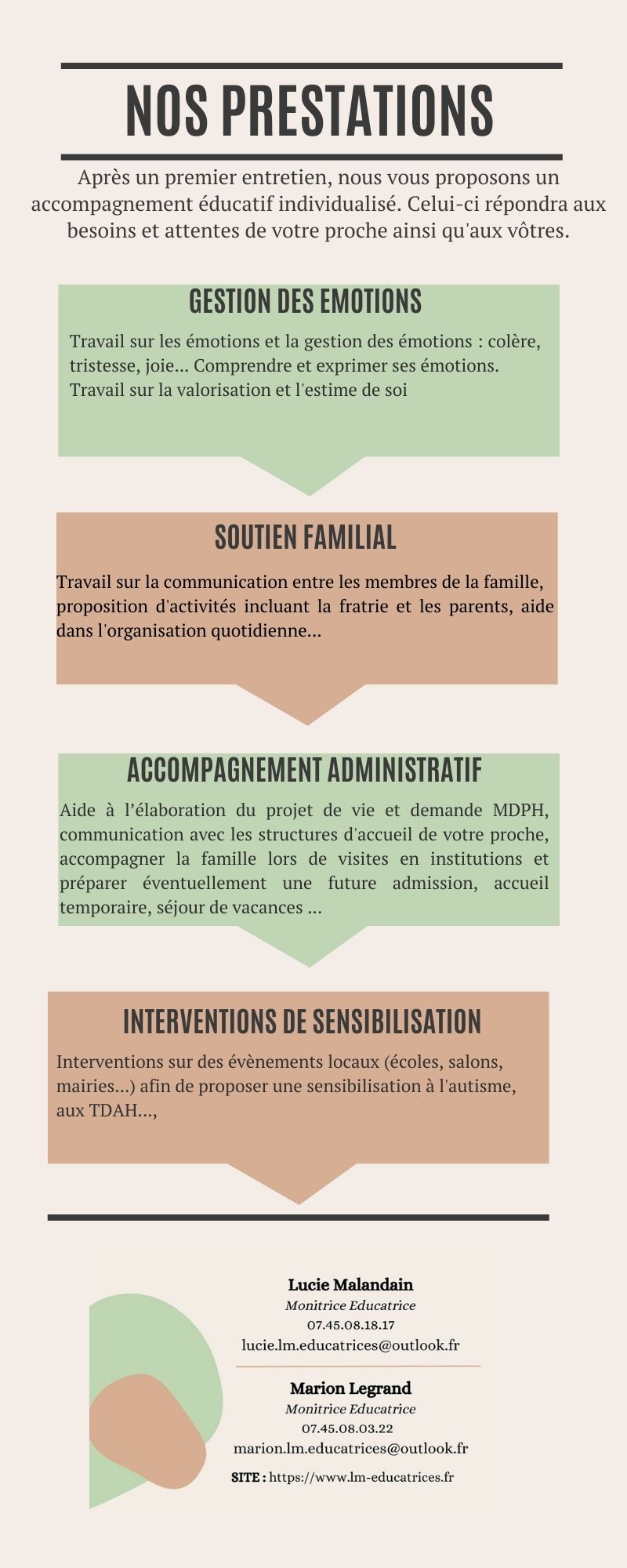 Information(s) complémentaire(s)J’ai exercé en structure spécialisée dans l’accompagnement d’adultes autistes pendant près de 5 ans. Je suis une jeune femme dynamique, rigoureuse et investie dans son travail.