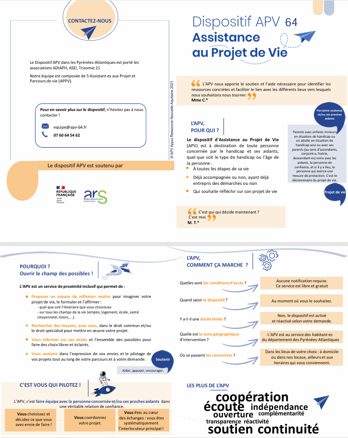 Informations Le dispositif d’Assistance au Projet de Vie (APV) est à destination de toute personne concernée par le handicap et ses aidants, quel que soit le type de handicap ou l’âge de la personne :