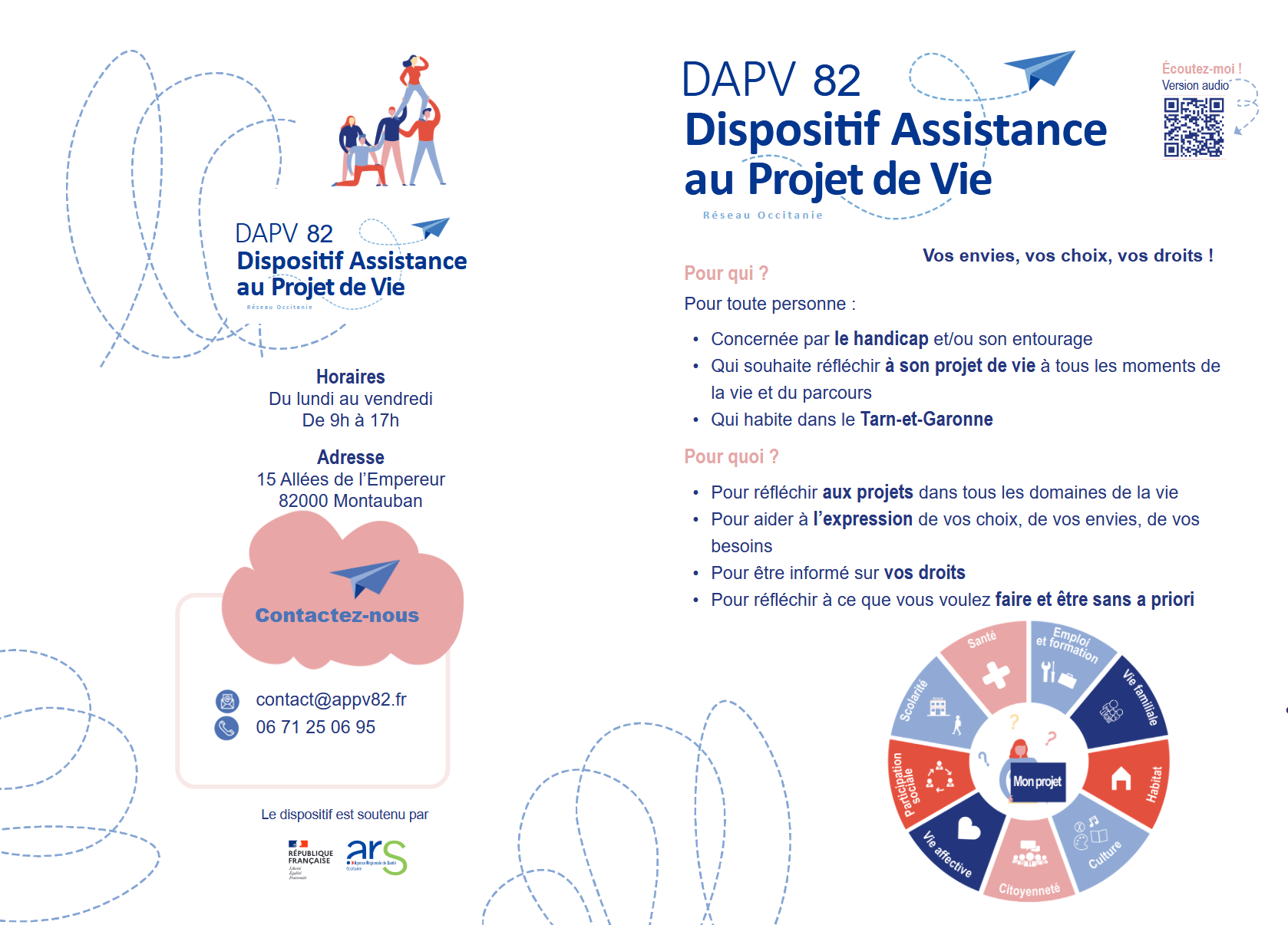 Informations L’APV est un service de proximité inclusif dont le but est de faire équipe avec la personne et ses proches aidants, dans une relation de confiance. Aider, appuyer, encourager et accompagner dans leur projet de vie toute personne concernée par le handicap et ses proches aidants. Ce service est gratuit et ne nécessite pas d'avoir un dossier ouvert à la MDPH, ni notification d'orientation.